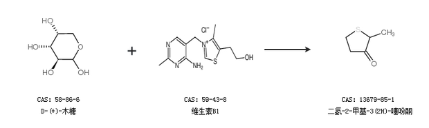 1.通過D-(+)-木糖和維生素B1合成二氫-2-甲基-3(2H)-噻吩酮