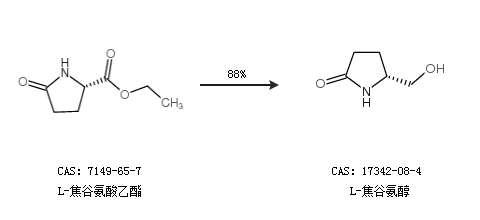 2.通過(guò)L-焦谷氨酸乙酯合成L-焦谷氨醇,收率約88%;