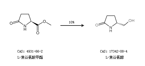 1.通過(guò)L-焦谷氨酸甲酯合成L-焦谷氨醇,收率約10%;