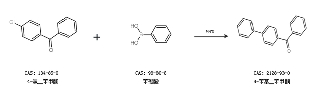 2.通過4-氯二苯甲酮和苯硼酸合成4-苯基二苯甲酮,收率約96%;