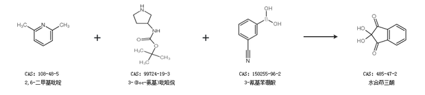 2.通過2,6-二甲基吡啶、3-(Boc-氨基)吡咯烷和3-氰基苯硼酸合成水合茚三酮