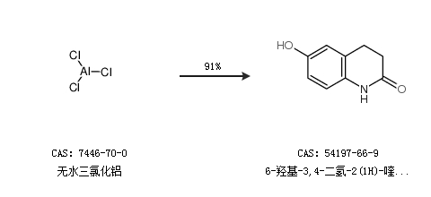1.通過無水三氯化鋁合成6-羥基-3,4-二氫-2(1H)-喹諾酮,收率約91%;