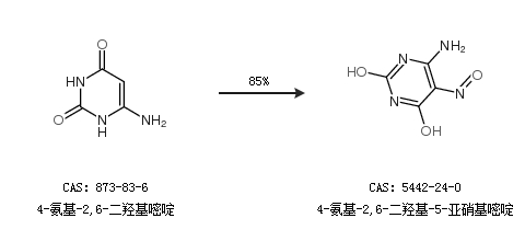1.通過4-氨基-2,6-二羥基嘧啶合成4-氨基-2,6-二羥基-5-亞硝基嘧啶,收率約85%;