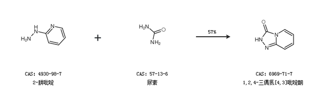 2.通過2-肼吡啶和尿素合成1,2,4-三偶氮[4,3]吡啶酮,收率約57%;