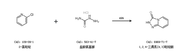 1.通過2-氯吡啶和鹽酸氨基脲合成1,2,4-三偶氮[4,3]吡啶酮,收率約49%;