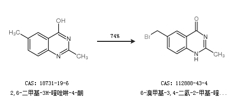 1.通過2,6-二甲基-3H-喹唑啉-4-酮合成6-溴甲基-3,4-二氫-2-甲基-喹唑啉-4-酮,收率約74%;