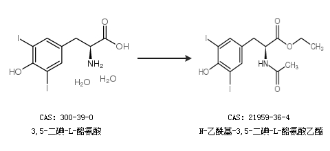 1.通過3,5-二碘-L-酪氨酸合成N-乙酰基-3,5-二碘-L-酪氨酸乙酯