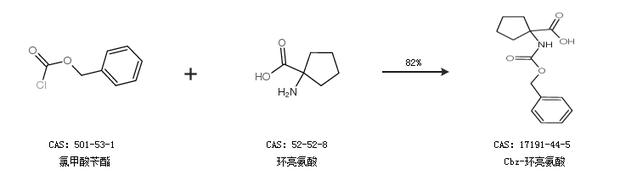 1.通過氯甲酸芐酯和環(huán)亮氨酸合成Cbz-環(huán)亮氨酸,收率約82%;