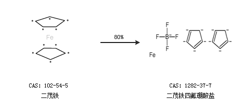 2.通過二茂鐵合成二茂鐵四氟硼酸鹽,收率約80%;