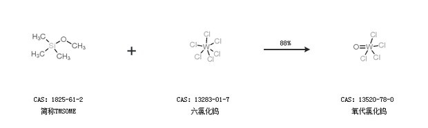 1.通過簡(jiǎn)稱TMSOME和六氯化鎢合成氧代氯化鎢,收率約88%;