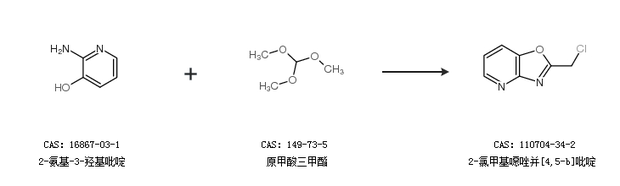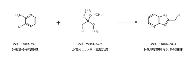 1.通過2-氨基-3-羥基吡啶和2-氯-1,1,1-三甲氧基乙烷合成2-氯甲基噁唑并[4,5-b]吡啶