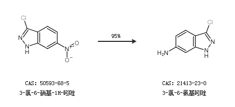 1.通過3-氯-6-硝基-1H-吲唑合成3-氯-6-氨基吲唑,收率約95%;