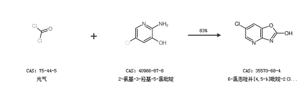 1.通過光氣和2-氨基-3-羥基-5-氯吡啶合成6-氯惡唑并[4,5-b]吡啶-2(3H)-酮,收率約83%;