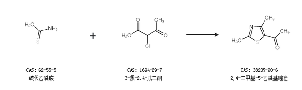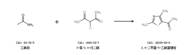 1.通過硫代乙酰胺和3-氯-2,4-戊二酮合成2,4-二甲基-5-乙?;邕?br>