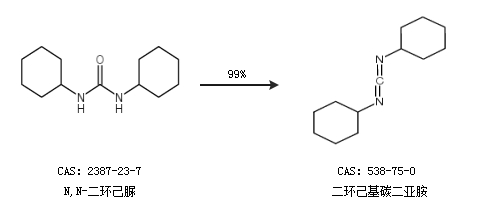 1.通過(guò)N,N-二環(huán)己脲合成二環(huán)己基碳二亞胺,收率約99%;