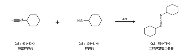 2.通過(guò)異氰環(huán)已烷和環(huán)己胺合成二環(huán)己基碳二亞胺,收率約33%;
