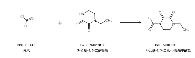 1.通過光氣和N-乙基-2,3-二酮哌嗪合成4-乙基-2,3-二氧-1-哌嗪甲酰氯