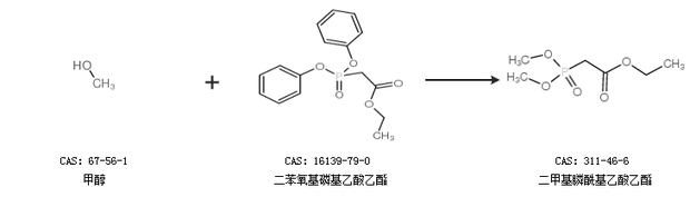 2.通過(guò)甲醇和二苯氧基磷基乙酸乙酯合成二甲基膦?;宜嵋阴?br>