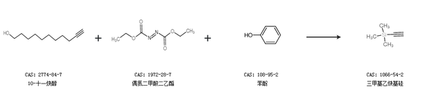 2.通過10-十一炔醇、偶氮二甲酸二乙酯和苯酚合成三甲基乙炔基硅