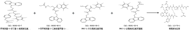 2.通過(guò)芴甲氧羰基-O-叔丁基-L-酪氨酸五氟苯酯、N-芴甲氧羰基-S-乙酰胺基甲基-L-半胱氨酸五氟苯酯、FMOC-L-天冬氨酸五氟苯酯和FMOC-L-谷氨酰胺五氟苯基酯合成精氨酸加壓素