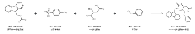2.通過氯甲酸-9-芴基甲酯、對甲苯磺酸、DL-天冬氨酸和苯甲醇合成Fmoc-L-天冬氨酸-1芐脂