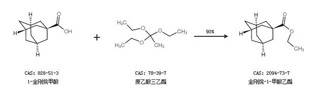 2.通過(guò)1-金剛烷甲酸和原乙酸三乙酯合成金剛烷-1-甲酸乙酯,收率約90%;