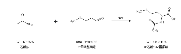 2.通過乙酰胺和3-甲硫基丙醛合成N-乙酰-DL-蛋氨酸,收率約94%;
