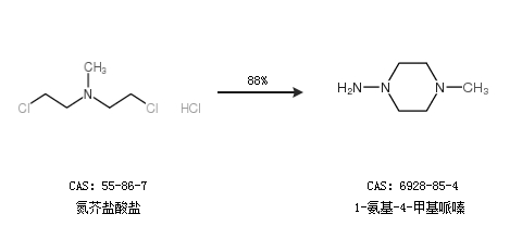 2.通過氮芥鹽酸鹽合成1-氨基-4-甲基哌嗪,收率約88%;