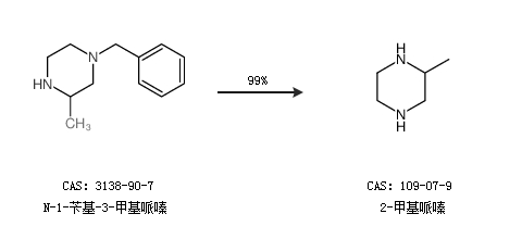 1.通過N-1-芐基-3-甲基哌嗪合成2-甲基哌嗪,收率約99%;