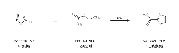 1.通過5-溴噻唑和乙酸乙酯合成2-乙;邕,收率約88%;