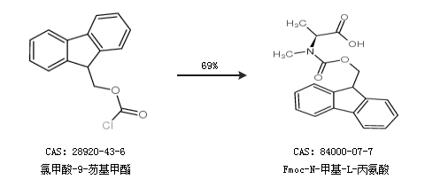 1.通過氯甲酸-9-芴基甲酯合成Fmoc-N-甲基-L-丙氨酸,收率約69%;