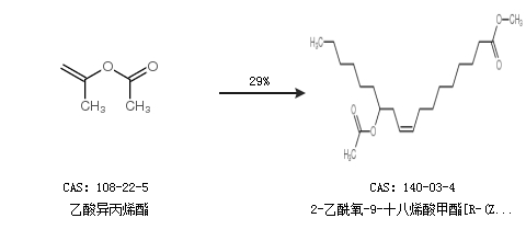 2.通過乙酸異丙烯酯合成2-乙酰氧-9-十八烯酸甲酯[R-(Z)-,收率約29%;