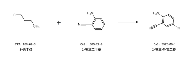 1.通過1-氯丁烷和2-氨基苯甲腈合成2-氨基-5-氯苯腈