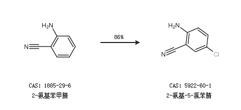 2.通過2-氨基苯甲腈合成2-氨基-5-氯苯腈,收率約86%;