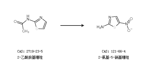 中文別名 乙酰胺硝噻唑;胺硝噻唑;5-硝基-2-噻唑胺;硝胺噻唑;