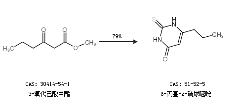 1.通過3-氧代己酸甲酯合成6-丙基-2-硫尿嘧啶,收率約79%;