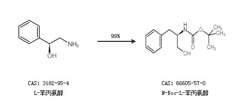 1.通過L-苯丙氨醇合成N-Boc-L-苯丙氨醇,收率約99%;
