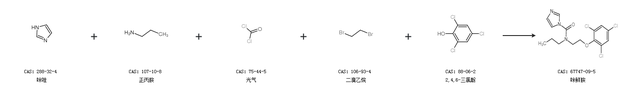 1.通過(guò)咪唑、正丙胺、光氣、二溴乙烷和2,4,6-三氯酚合成咪鮮胺