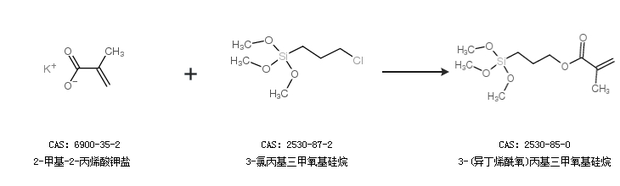2.通過2-甲基-2-丙烯酸鉀鹽和3-氯丙基三甲氧基硅烷合成3-(異丁烯酰氧)丙基三甲氧基硅烷