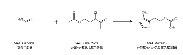 2.通過硫代甲酰胺和2-氯-3-氧代戊基乙酸酯合成4-甲基-5-(2-乙酰氧乙基)噻唑