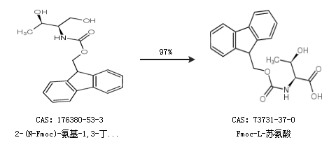 2.通過2-(N-Fmoc)-氨基-1,3-丁二醇合成Fmoc-L-蘇氨酸,收率約97%;