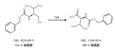 2.通過(guò)Cbz-L-纈氨醇合成CBZ-L-纈氨酸,收率約79%;