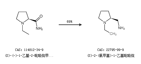 1.通過(S)-(-)-1-乙基-2-吡咯烷甲酰胺合成(S)-2-(氨甲基)-1-乙基吡咯烷,收率約69%;