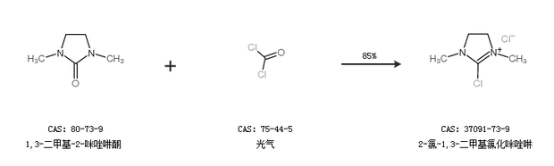 2.通過1,3-二甲基-2-咪唑啉酮和光氣合成2-氯-1,3-二甲基氯化咪唑啉,收率約85%;