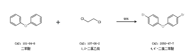 2.通過二苯醚和1,2-二氯乙烷合成4,4''-二溴二苯醚,收率約98%;