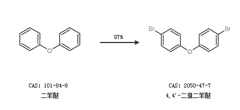 1.通過二苯醚合成4,4''-二溴二苯醚,收率約97%;