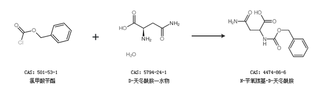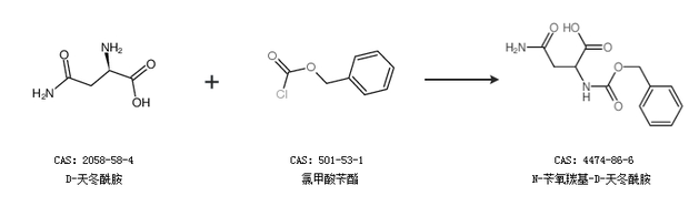 1.通過D-天冬酰胺和氯甲酸芐酯合成N-芐氧羰基-D-天冬酰胺