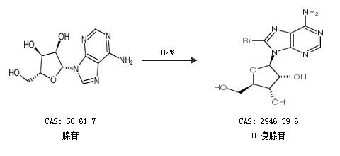 1.通過腺苷合成8-溴腺苷,收率約82%;