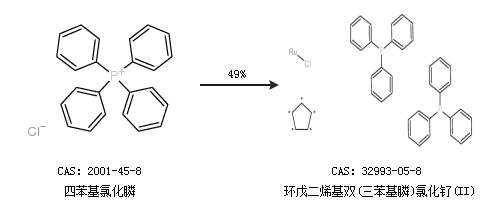 2.通過四苯基氯化膦合成環(huán)戊二烯基雙(三苯基膦)氯化釕(II),收率約49%;