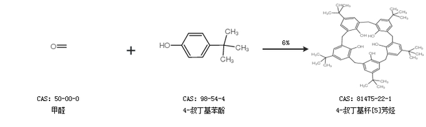 2.通過(guò)甲醛和4-叔丁基苯酚合成4-叔丁基杯[5]芳烴,收率約6%;
